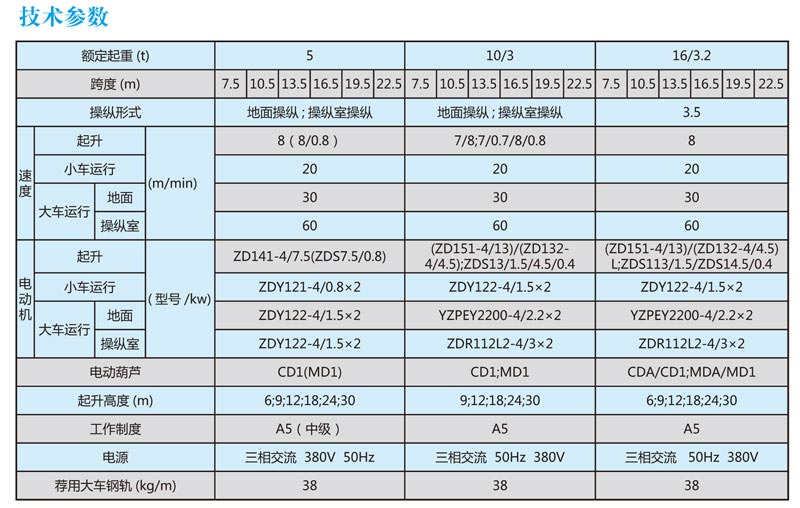 LH型電動(dòng)葫蘆橋式起重機(jī)。具有外形尺寸緊湊、建筑凈空高度低、自重輕、輪壓小等優(yōu)點(diǎn)。適用于機(jī)械加工車間、冶金、倉庫、料場、電站等,它也可以替代普通雙梁橋式起重機(jī)。起重量為1-50T,跨度為7.5-35.5米,工作級別為A3--A5,工作環(huán)境溫度為-25℃--40℃。