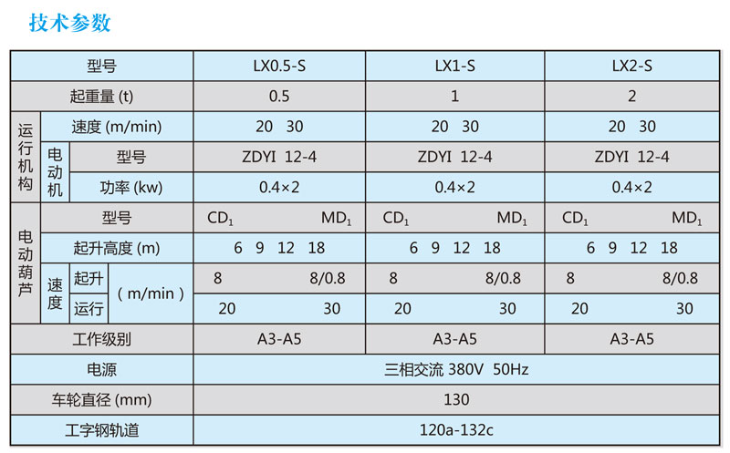 LX型與CD1型、MD1型電動(dòng)葫蘆配套使用,成為一種有軌運(yùn)行的輕小型起重機(jī)。用于機(jī)械裝配及倉庫等場(chǎng)所,起重量為1-10T,跨度為3.5-15.5米,工作級(jí)別為A3,工作環(huán)境溫度為-25℃--40℃。